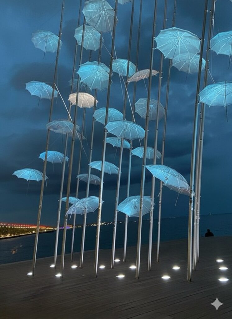 • Οι εμβληματικές Ομπρέλες του Ζογγολόπουλου στη Θεσσαλονίκη, που «φώτισαν» τον Βορρά με το μήνυμα της ελπίδας και της ενημέρωσης.